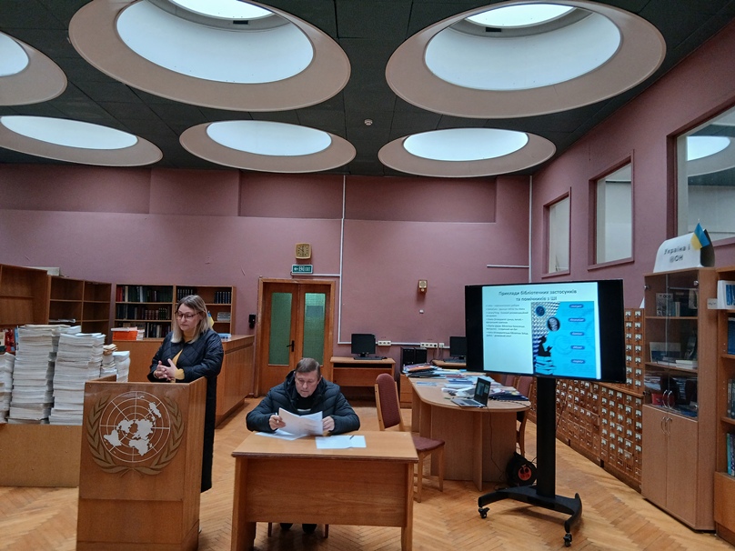 Старша наукова співробітниця аналітично-прогностичного відділу Національної юридичної бібліотеки НБУВ, кандидатка наук із соціальних комунікацій В. Бондаренко виступила з доповіддю «Персоналізоване бібліотечне обслуговування: потенціал мобільних застосунків зі штучним інтелектом». Вона розглянула міжнародний досвід використання штучного інтелекту в зарубіжних бібліотеках, окреслила широкі можливості оптимізації обслуговування читачів і звернула увагу на окремі технологічні особливості та можливі вади в роботі ШІ.