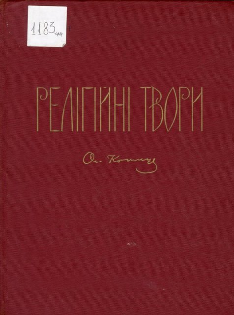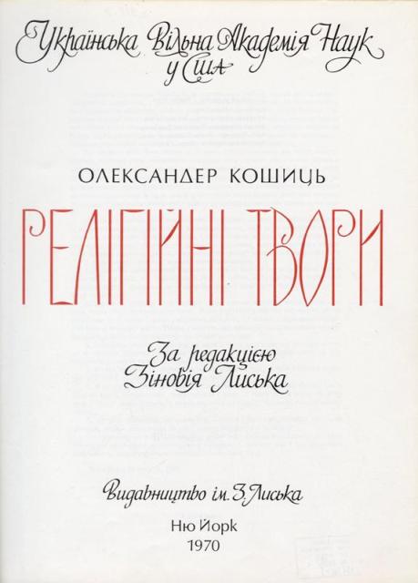 9. Кошиць О. Релігійні твори / О. Кошиць ; за ред. З. Лиська; Укр. Вільна Акад. Наук у США. Нью-Йорк: Вид-во ім. З. Лиська, 1970. 736 c. : ноти Шифр ВЗУ: 1183 укр