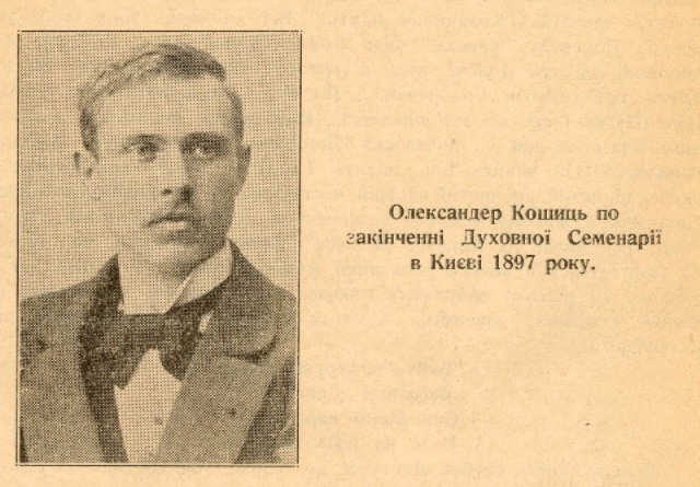 Спогади О. Кошиця про власну участь в різдвяній літургії в Києві. Містить фотографію О. Кошиця по закінченню ним Київської духовної семінарії 1895 року.