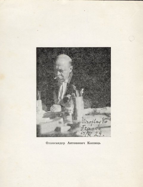 33. Олександер Антонович Кошиць (12.9.1875–21.9. 1944) // Кедровський В. Обриси минулого: Деякі останні діячі-українофіли напередодні революції 1917 року. Нью-Йорк; Джерсі Сіті: Свобода, 1966. C. 92–108. 133 с. Шифр ВЗУ: 9430 укр