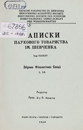 17. Записки Наукового Товариства Шевченка : зб. філол. секції Т. CLXXXV / ред. П. Ковалів. Нью-Йорк ; Париж ; Торонто : [б. в.], 1969. 185 с. Шифр: 13973 укр.