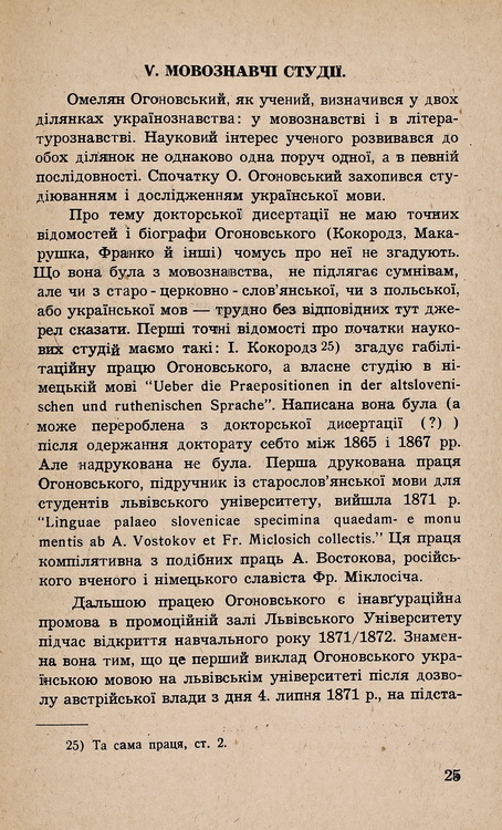 4. Білецький Л. Мовознавчі студії // Білецький Л. Омелян Огоновський. – Вінніпег : УВАН, 1950. 68 с. (Серія :Укр. вчені ; УВАН). С. 25–30. Шифр: 9544 укр.