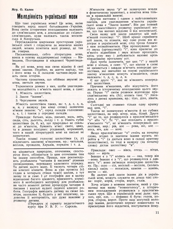 41. Калин О. Мелодійність української мови // Учит. слово. 1956. №7. С. 11–12. Шифр: жУНД №350/1956.2.7