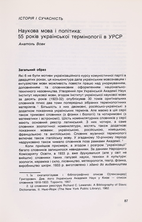 8. Вовк А. Наукова мова і політика: 55 років української термінології в УРСР // Сучасність. 1979. Ч. 7-8 (223). – С. 87–96. Шифр: ВЗУ ІК НБУВ