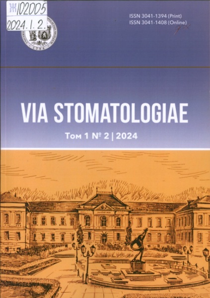 1. VIA STOMATOLOGIAE: реценз. наук. журн. / Львів. нац. мед. ун-т ім. Данила Галицького; редкол.: Н. Чухрай (голов. ред.) [та ін.]. - Одеса: Гельветика, 2024. - Виходить двічі на рік. - Отримується з 2024. - ISSN 3041-1394. - ISSN 3041-1408