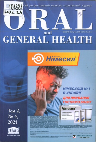 11. ORAL AND GENERAL HEALTH: спеціал. реценз. наук.-практ. журн. / Засн., вид. О. Ю. Заславський; редкол.: І. П. Мазур (голов. ред.) [та ін.]. - Київ: Заславський О. Ю., 2020. - Виходить щоквартально. - Отримується з 2020. - ISSN 2709-7552. - ISSN 2709-7560