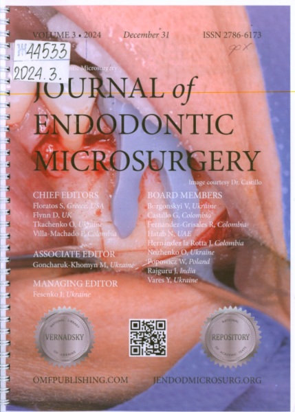 4. JOURNAL OF ENDODONTIC MICROSURGERY: journal / ed.-in-chief Spyros Floratos [et al.]. - [Kyiv]: OMF Publishing, LLC, 2022. - Виходить щорічно. - Отримується з 2022. - ISSN 2786-6173