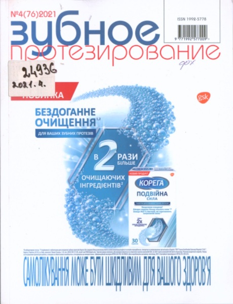 5. ЗУБНОЕ ПРОТЕЗИРОВАНИЕ: журн. для ортопедов и зубных техников / Ин-т стоматологии НМАПО им. П. Л. Шупика [та ін.]; гл. ред. В. И. Беда. - Киев: Эксперт ЛТД, 2002. - Отримується з 2004. - ISSN 1992-5778