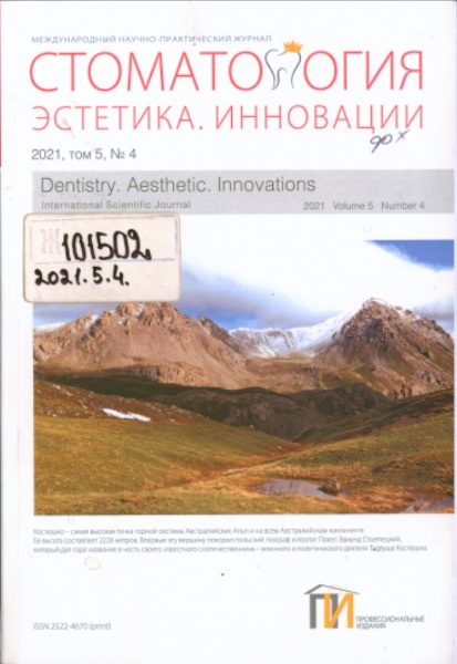 7. СТОМАТОЛОГИЯ. ЭСТЕТИКА. ИННОВАЦИИ = Dentistry. Aesthetics. Innovations: международ. науч.-практ. журн. / Нац. мед. акад. последипломного образования им. П. Л. Шупика, УП "Проф. изд.", ОО "Ассоц. стоматологов Украины"; редкол.: Н. О. Савичук (гл. ред.) [и др.]. - Киев: Профессиональные издания, 2017. - Виходить щоквартально.- Отримується з 2017. - ISSN 2522-4670