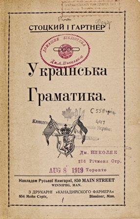 - Стоцький [Р.] Українська Граматика / [Р.] Стоцький, [Ф.] Ґартнер. – Віннїпеґ : Накл. Руської Книгарнї, 1919 (Віннїпеґ : Друк. Канадийського Фармера). – 242, [IV] с. Шифр: УНД № 428