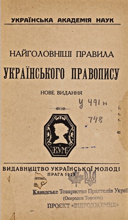 - Найголовніші правила українського правопису. – нове вид. – Прага : Вид-во Укр. Молоді, 1925. – 16 с. – (УАН). Шифр: УНД № 1245/1 (конв. 1–4)