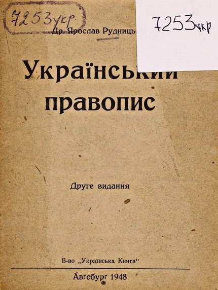 - Рудницький Я. Український правопис / Я. Рудницький. – 2-ге вид. – Авґсбурґ : Укр. книга, 1948. – ХХХХ с. Шифр: 7253 укр