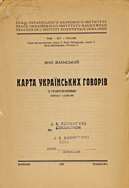 - Зілинський І. Карта українських говорів з поясненнями : мірило 1 : 4.000.000 / І. Зілинський ; ред. Р. Смаль-Стоцький. – Варшава : Укр. наук. ін-т, 1933 (Львів : Друк. НТШ). – 20 с. – (Серія філологічна / Пр. Укр. наук. ін-ту ; т. 14, кн. 3). Шифр: Рудницький Я. Б. № 10