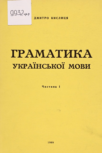 - Кислиця Д. Граматика української мови. Ч. 1. Фонетика і морфологія / Д. Кислиця. – 9-те вид. – Нью-Йорк : Вид-во Шкільної Ради, 1989. – 127, [1] с. Шифр: 9932 укр