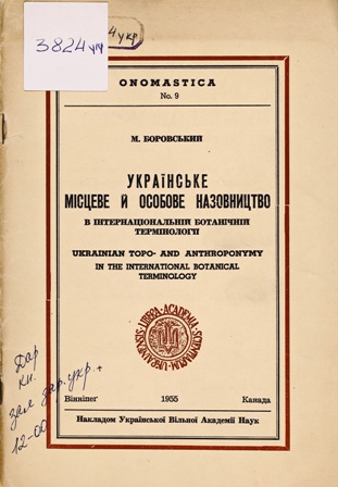 - Боровський М. Українське місцеве й особове назовництво в інтернаціональній ботанічній термінології / М. Боровський ; вступ. сл. від авт. – Вінніпеґ : УВАН, 1955 (Winnipeg : Printed by the New Pathway). – 62, [2] с. – Літ. : с. 61–62. – (Cерія : Назвознавство / за ред. Я. Рудницького / УВАН ; ч. 9). – (Видано з допомогою Укр. Нар. Союзу в Америці). Шифр: 3824 укр, 8463 укр, 8560/9 укр (конв. 1–30)