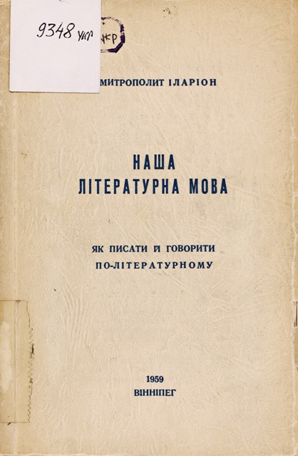 - Іларіон (Митрополит). Наша літературна мова : як писати й говорити по-літературному : мовні нариси / Іларіон. – Вінніпег : Наша культура, 1958 (Winnipeg : Printed by the Christian Press). – 424 с. Шифр: 2050 укр, 9348 укр