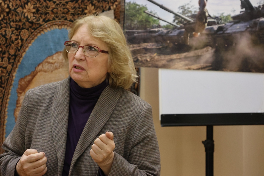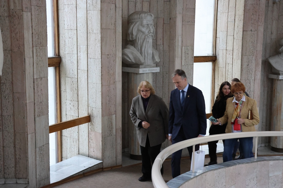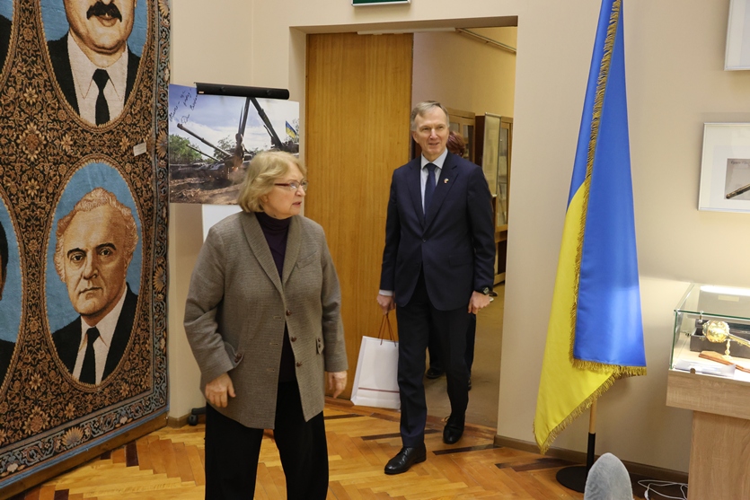 Вона розповіла гостю про діяльність НБУВ як наукового, інформаційного й культурно-просвітницького центру країни, про роботу підрозділів Бібліотеки, охарактеризувала вагому й надзвичайно цінну історичну спадщину, яка міститься у фондах НБУВ, окремо акцентувала на значній підтримці й допомозі зарубіжних колег та міжнародних організацій, яку вони демонструють у важкий для України час російської агресії.