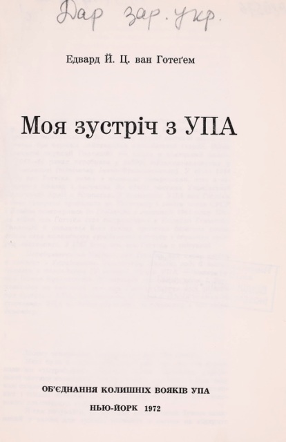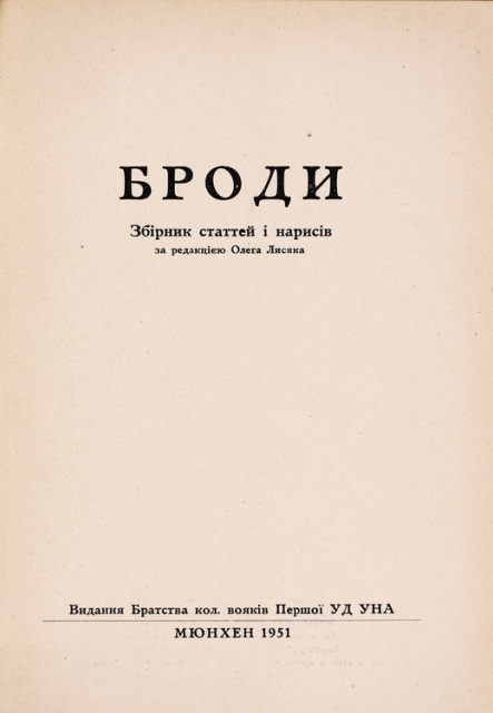 У Альманаху ОБВУ-2. 1949–1964 (Лондон : [б. в.], [б. р.]. – 148 с.) читаємо: «…в 30-річчя ОбВУ нашу вояцьку пошану українським генералам і старшинам, визначним українським політичним, науковим, громадським і культурним діячам, установам, організаціям, товариствам, як рівнож британським і чужинецьким особистостям, які втримували зв’язок і співпрацювали з ОбВУ. Наша щира подяка Головній Управі Братства кол. вояків І УД У НА, Крайовим Братствам І УД УНА, Управі Братства «Броди – Лев» та Управам інших українських комбатантських організацій у вільному світі за добру і дружню співпрацю з нашою комбатантською організацією. …».