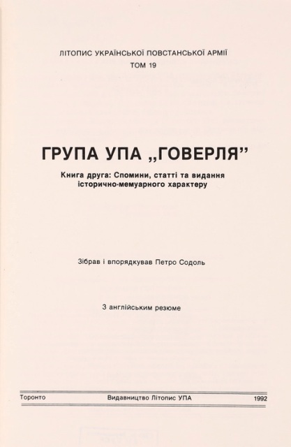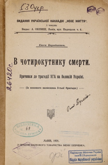 У виданні описані й події боротьби за Україну у 1919 р., відступ українських сил під тиском більшовиків. У всіх деталях описано засідання Стрілецької Ради, яке відбулося 22 червня 1919 р. в містечку Чорний Острів, візити С. Петлюри до Є. Петрушевича із проханням про допомогу проти більшовиків, зміну кабінету Директорії, Кам’янецький період, залишення Галицькою армією Галичини 16 липня 1919 р. і перехід Збруча (С. 171, 183–187).