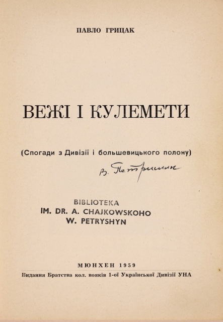 Військовий діяч, військовий історик і педагог, генерал-хорунжий Армії УНР Всеволод Петрів у книзі «Спомини з часів української революції (1917–1921). Ч. І : До Берестейського миру (Львів : Червона Калина, 1927. – 180 с.) висвітлює період Гетьманату, деталізує всі складнощі співжиття з німцями, настрої місцевого населення, добровільну допомогу села, бої під Лозовою та Понятином, похід Української армії на Крим, зустріч з австрійськими галицькими частинами та російським відділом полковника Дроздовського, конфлікт з німецько-австрійським командуванням, детально розповідає про татарський уряд, бої та перетрактації з севастопольською залогою, про вихід Української армії з Криму. «Спомини з часів Української революції (1917–1921)» охоплюють перебування армії в околицях Мелітополя, перехід до Олександрівська та зустріч з Українськими Січовими Стрільцями.