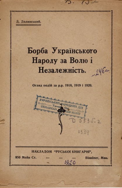 Друга книга М. Островерха, представлена на виставці, «Блиски і темряви: 1918–1919–1920» (Нью-Йорк : [б. в.], 1966. – 208 с.), знайомить читачів з революційними подіями на західних землях України весною 1918 р. Автор аналізує усі найважливіші події революції: ІІІ Універсал, ІV Універсал, Берестейський мир, Гетьманат. Детально розповідає про формування 10-ої бригади згідно з наказом штабу І Корпусу УГА (С. 53).