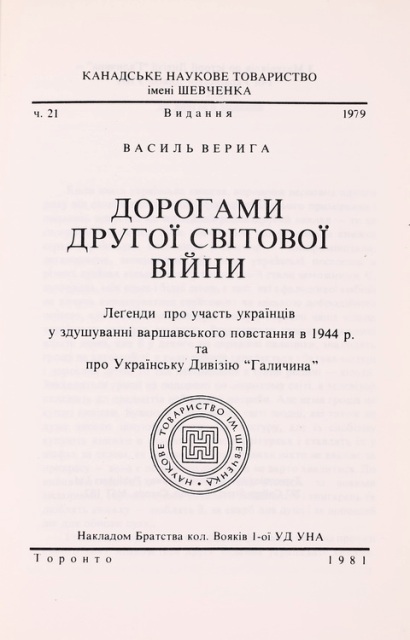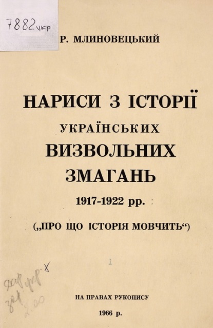 Зокрема, у збірнику «За державність : матеріяли до історії війська українського. Зб. 10 / ред. М. Садовський ; літературно-мовн. ред. П. Гавриш ; обкл. П. Холодний (старший) ; заставки М. Битинський ; Укр. воєнно-іст. ін-т. – Торонто : Укр. воєнно-іст. ін-т, 1964 (Торонто : Друк. «Гомону України»). – 254, [1] с. : фот., мал., схеми» у передмові читаємо: «Коли в 1920 р. замовкли гармати українського війська і армія перейшла кордони Польщі і Румунії і опинилась в таборах інтернованих, то ініціативна група старшин створила Українське Воєнно-Історичне Товариство в Каліші для збирання історичних матеріалів з визвольних змагань…». Згодом у Німеччині було створено Музей українського війська, а генерал М. Садовський, останній очільник Українського Воєнно-Історичного Товариства, в таборі Майну-Кастель (Німеччина), в 1947 р. зібрав ініціативну групу старшин, де було ухвалено відродити ідею товариства в формі Українського Воєнно-Історичного Інституту, що й було втілено в життя. Осідком Інституту з 1950 р. є м. Торонто в Канаді. Інститут розгорнув видавничу діяльність, розбудував свою структуру: Музей, Архів, Бібліотека, Видавництво і Галерея Образів, – всі пам’ятки й документи, пов’язані зі збройною боротьбою за Волю і Державність України. Авторами цього збірника є В. Кедровський, полковник; О. Греків, генерал-хорунжий; Ю. Ківерчук, полковник; П. Дубрівський, сотник; М. Крат, генерал-поручник; І. Зварич, підпоручник; В. Сім’янцев, сотник; Г. Маслівець, підполковник; С. Левченко, майор; В. Задояний, підполковник; А. Кущинський, підполковник та інші.