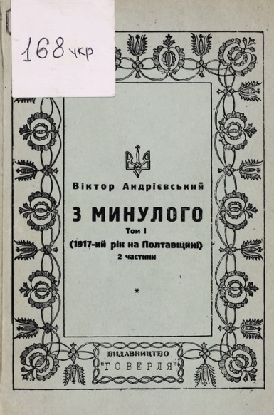 Видання «З минулого: 1917 рік на Полтавщині. Т. 1, ч. 2-га» (Берлін : Укр. слово, 1921. – 209 с.) В. Андрієвського знайомить читачів з перебігом першої українсько-більшовицької війни в листопаді – грудні 1917 р., дає можливість осягнути політичну ситуацію в тогочасній Україні, окупацію Полтави 7 січня 1918 р. армією Муравйова, головні кадри якої складалися з випущених на волю карних злочинців.
