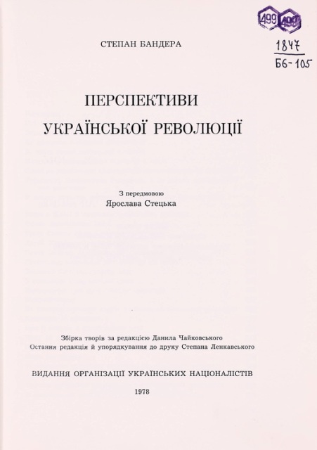 У виданні «Бандера С. Перспективи української революції» (Мюнхен : Вид. Оранізації укр. націоналістів, 1978. – 640 с.) автор зосереджений на головній справі визвольної боротьби України з московських тенет, велику увагу приділяє переможній визвольній війні усіх уярмлених націй проти російського окупанта й більшовицької тиранської тоталітарної системи. С. Бандера пише про всенародне організоване збройне повстання Організації Українських Націоналістів (ОУН) – Української Повстанської Армії (УПА), про війну України та інших поневолених народів на два фронти: проти двох варіантів російських імперіалістів – більшовицьких і антикомуністичних, підтриманих евентуально деякими західними державами. Як передбачливий стратег він всебічно розробляє оборонні заходи України, вказує на шляхи розщеплювання війни на два фронти.