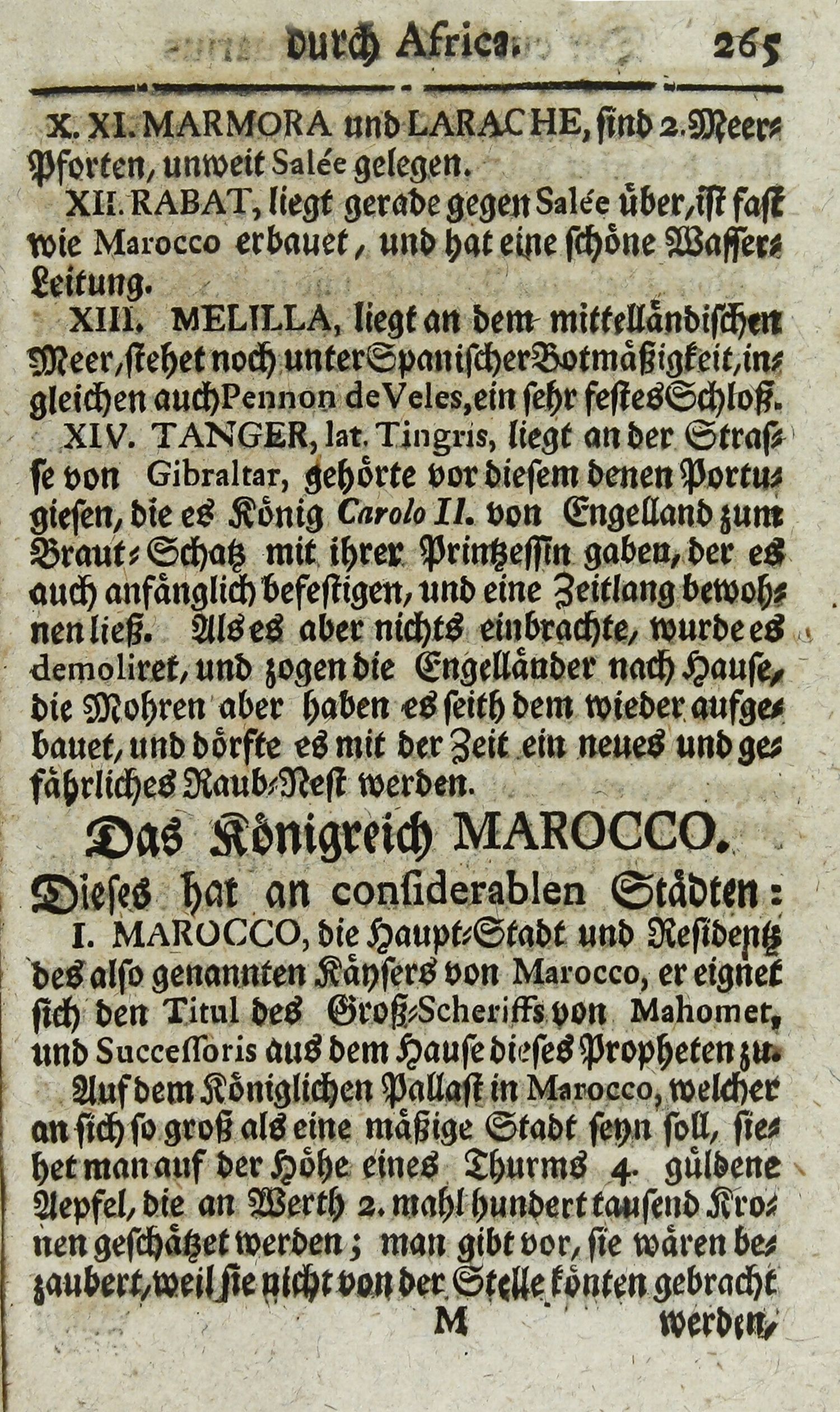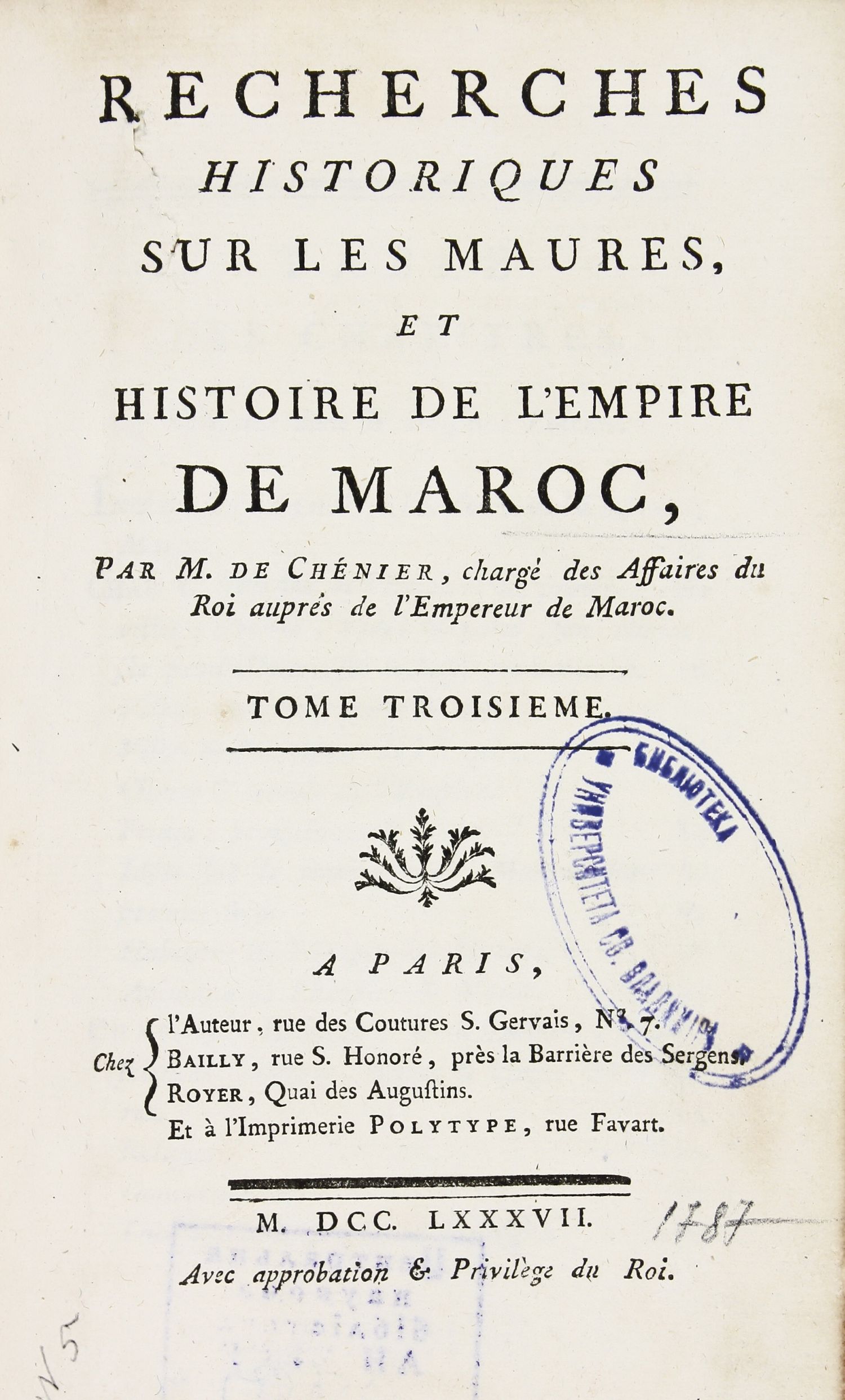 Доповнюючи цю тему, хотілося б запропонувати для перегляду ілюстративний і текстовий матеріал, що зберігається у відділі бібліотечних зібрань та історичних колекцій і стосується цієї теми. Переважна більшість друків — карти та атласи; є багатотомники з історії Марокко та Африки, у яких у контексті історії Африки описується Королівство Марокко. За хронологічними рамками це видання XVI – першої чверті XX ст., надруковані французькою, німецькою та англійською мовами. Серед них — описи північно-західної Африки та подорожей до неї, праці німецьких картографів, короткі повідомлення у французьких газетах, книги, видані в Марокко та інші.