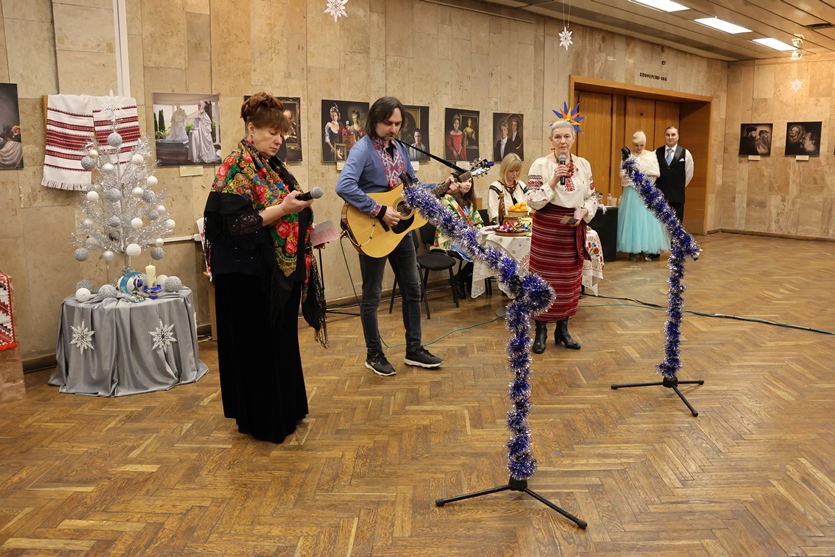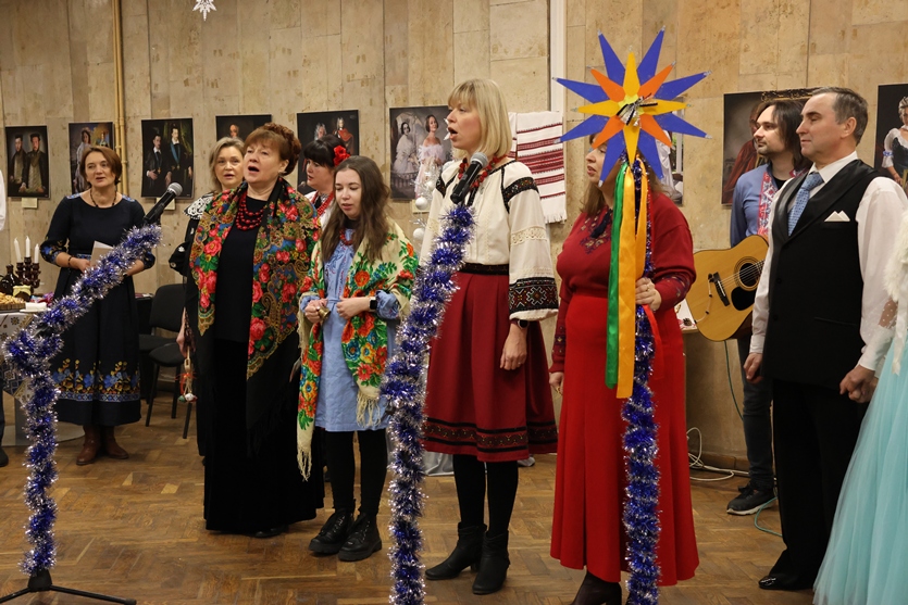 Але не лише веселий настрій панував у холі конференц-зали, святково прикрашеному руками наших колег-ентузіастів. Подячно вклонилися присутні всім захисникам і захисницям України, вшанували пам’ять полеглих воїнів, серед яких, на жаль, є й працівник НБУВ Артем Торопов… Тож, крім всесвітньо відомого «Щедрика» й колядок, прозвучали й пісні про Бахмут, про вірність своїй землі та звитяжність її захисників.