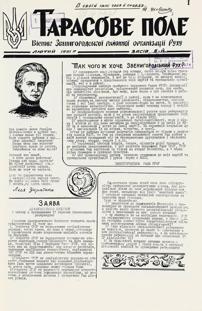 До уваги читачів – виставка, присвячена газетам самвидаву 1989–1995 років.