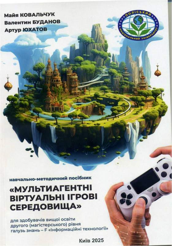 Майя Ковальчук, Валентин Буданов та Артур Юхатов передали в дар НБУВ видання "Мультиагентні віртуальні ігрові середовища" (Київ, 2025).