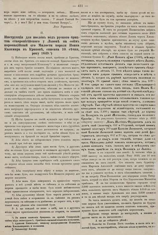 Уперше друкований вірш тринадцятирічної Лариси Косач «Конвалія» було опубліковано в № 22 (с. 186) часопису за 1884 р. під псевдонімом Леся Українка, який вона запозичила у свого дядька Михайла Драгоманова (той підписувався як «Українець»). Вірш було написано у мальовничому поліському селі Колодяжному, де поетеса провела свої дитячі та юнацькі роки.
