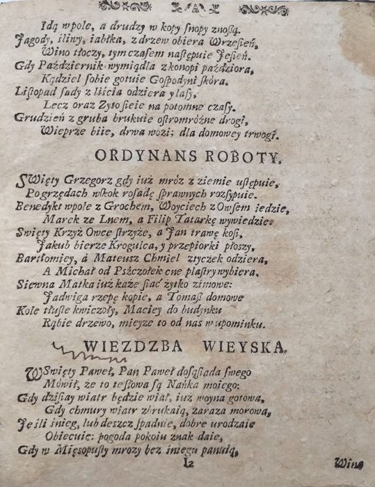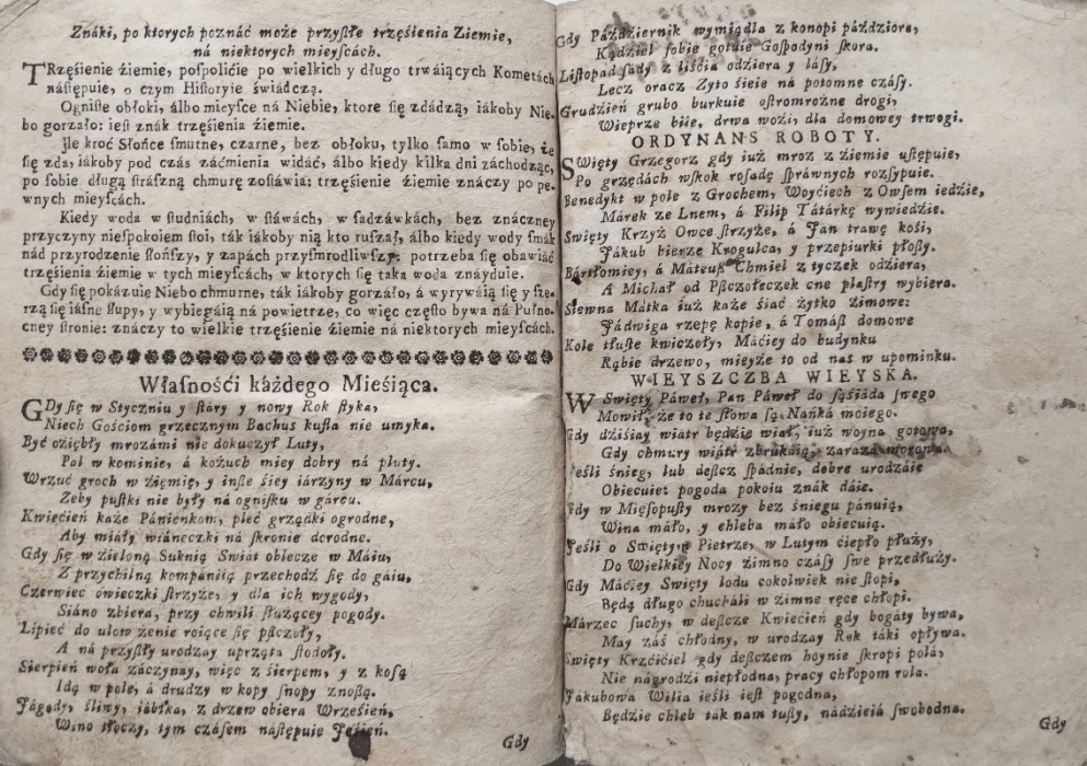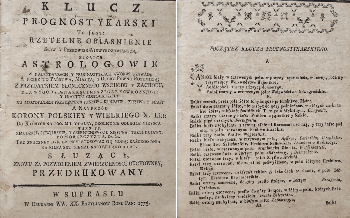 Цікаву сторінку представляють два видання 1740 та 1775 рр. під назвою «Klucz prognostykarski, to iest: rzetelne obiasnienie słow y przezwisk niewyrozumianych, ktorych astrologowie w kalendarzach y prognostykach swoich używaią» (Прогностичний ключ, тобто достовірне пояснення незрозумілих слів і назв, які астрологи використовують у своїх календарях і прогнозах) (іл. 18–21), які є свого роду додатком до традиційних для XVIII ст. календарів. Ці видання, серед іншого, містять медичні та господарчі поради, народні прикмети про погодні та господарські явища, відомості про вплив дня народження на риси характеру людини тощо. Окремі народні прикмети у цих виданнях викладено у віршованій формі.