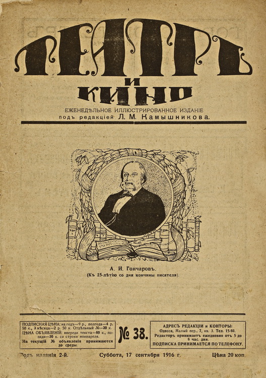 Журнал «Театр и кино» почав виходити з листопада 1915 р. в Одесі. У кожному номері публікувалися фотографії, ілюстрації та карикатури на одеських митців і гастролюючих акторів. Редактором і видавцем журналу був відомий одеський журналіст і мистецький критик Лев Маркович Камишніков (1881–1961).
