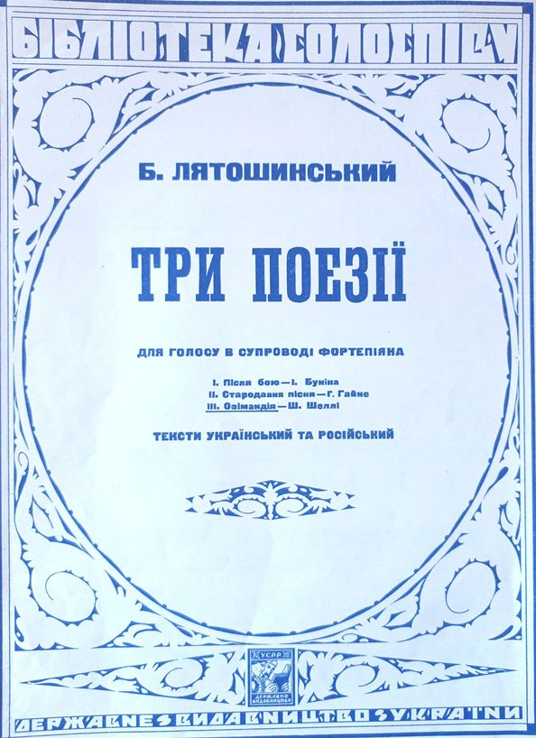 В електронній виставці представляємо графіку Олексія Маренкова, що міститься у нотних виданнях, яка водночас пов’язана з історією не тільки музичного, а й образотворчого мистецтва. Олексій Маренков активно застосовував у своїх роботах нарбутівські розробки та шрифти, про що згадує у своїй праці український мистецтвознавець Платон Білецький [3]. Художники-авангардисти в орнаментах відчували незвичайну експресивну силу, таку само абстрактну, як і музика, що здатна створити певний настрій або висловити його [1]. Чітка закономірність візерунків нагадує нам про симетрію і ритм в природі, і водночас вона вибудовується за законами мистецтва, ґрунтується на умовності. Такий орнамент нерідко тяжіє до декоративного стилю і стилізації. Прикладом може бути оформлення О. Маренковим романсів Якова Степового (Іл. 3, 4, 5), Юлія Мейтуса ( Іл. 6) та Гната Хоткевича ( Іл. 7).