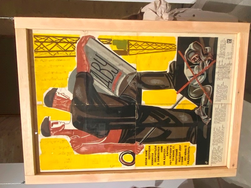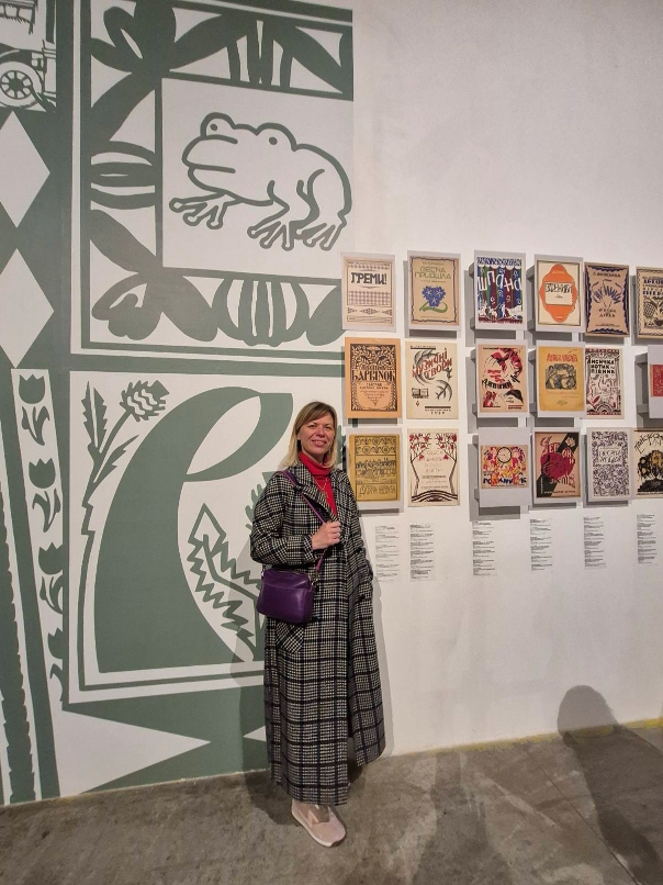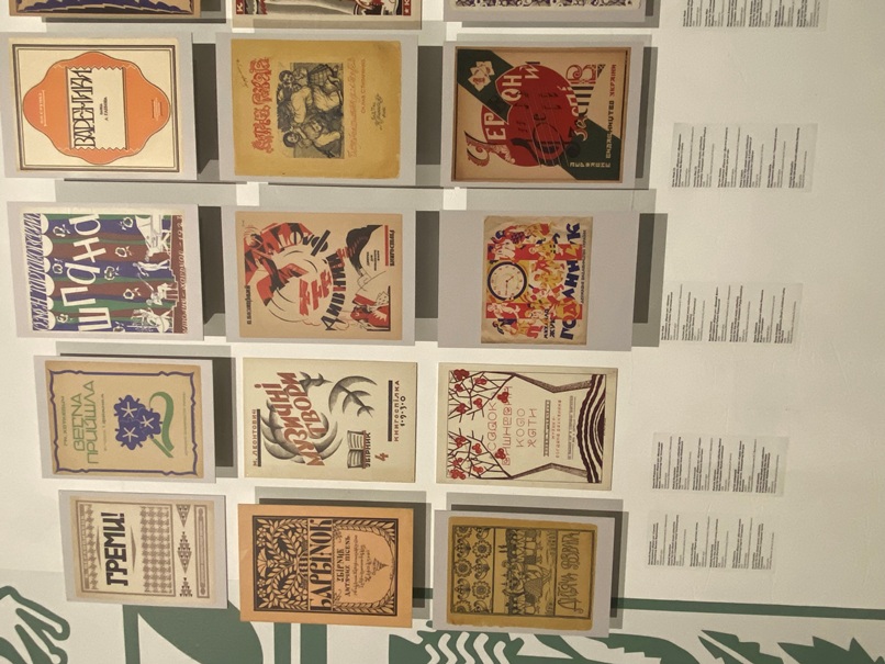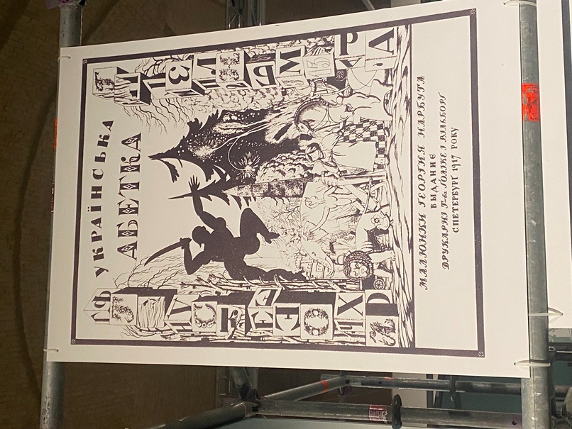 Прикметно, що одним з активних партнерів виставки є й наша бібліотека. У залі, де представлені книжкові обкладинки, цілий стенд присвячено обкладинкам нотних видань, які надані для експозиції відділом музичних фондів НБУВ. Цікавим окремим нашим експонатом є ще й оригінал великого агітаційного плаката Харківського державного видавництва авторства художника Д.М. Шавикіна із зображенням двох робітників, котрі дивляться відкриту книгу, а вірш під зображенням наполегливо закликає здобувати знання і звертатись до книг. Особливим акцентом цього плаката є те, що на його звороті вміщено ноти «Гірницької пісні» композитора М.Д Тіца.