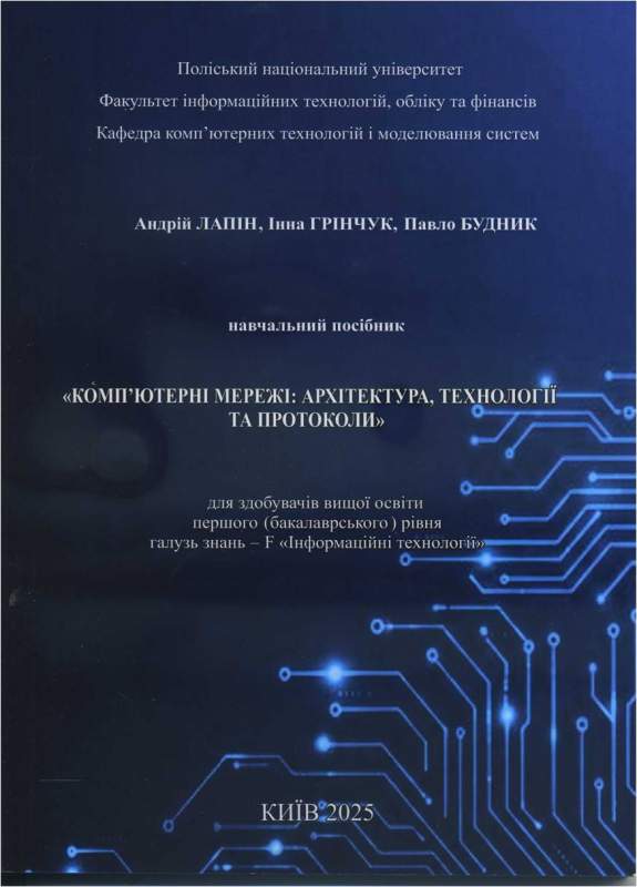 Посібник охоплює теоретичний і практичний матеріал. присвячений побудові, функціонуванню та аналізу компёютерних мереж, починаючи від базових принципів організації передавання даних і завершуючи сучасними протоколами прикладного рівня, механізмами маршрутизації та засобами кібербезпеки.